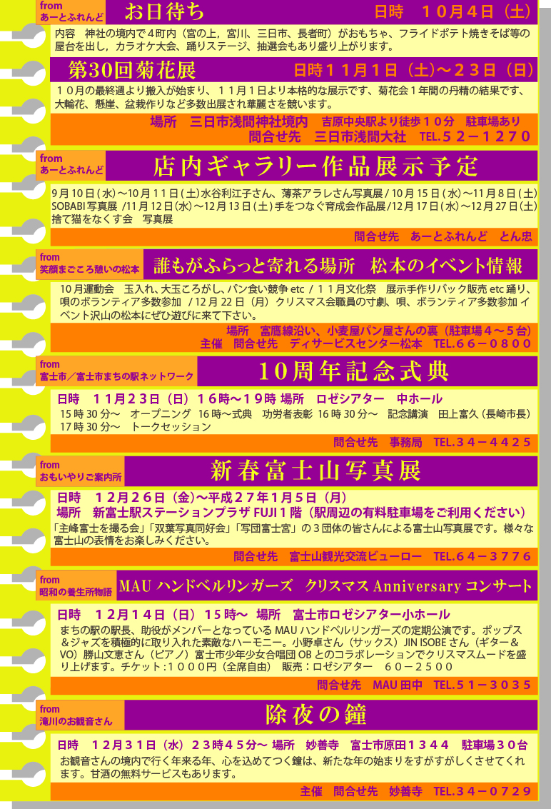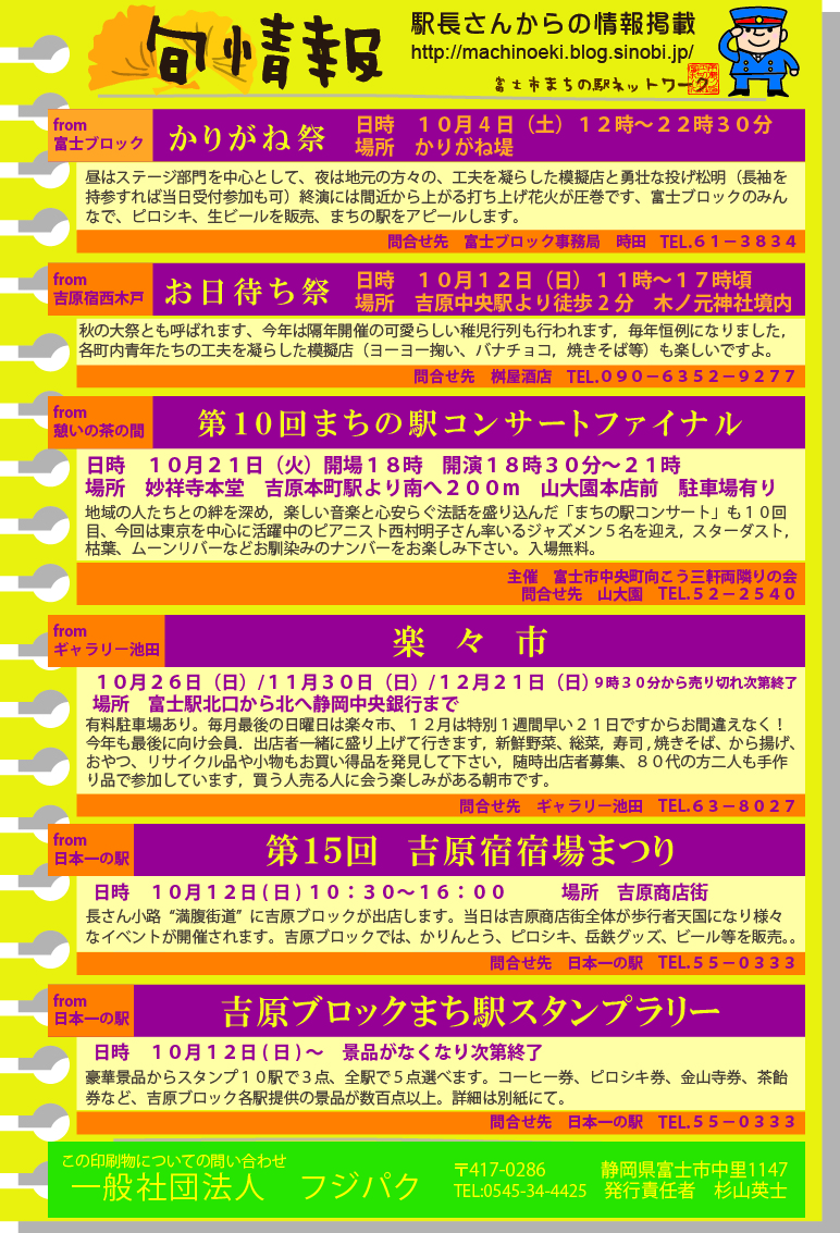 問い合わせ先 富士市まちの駅事務局(フジパク内)